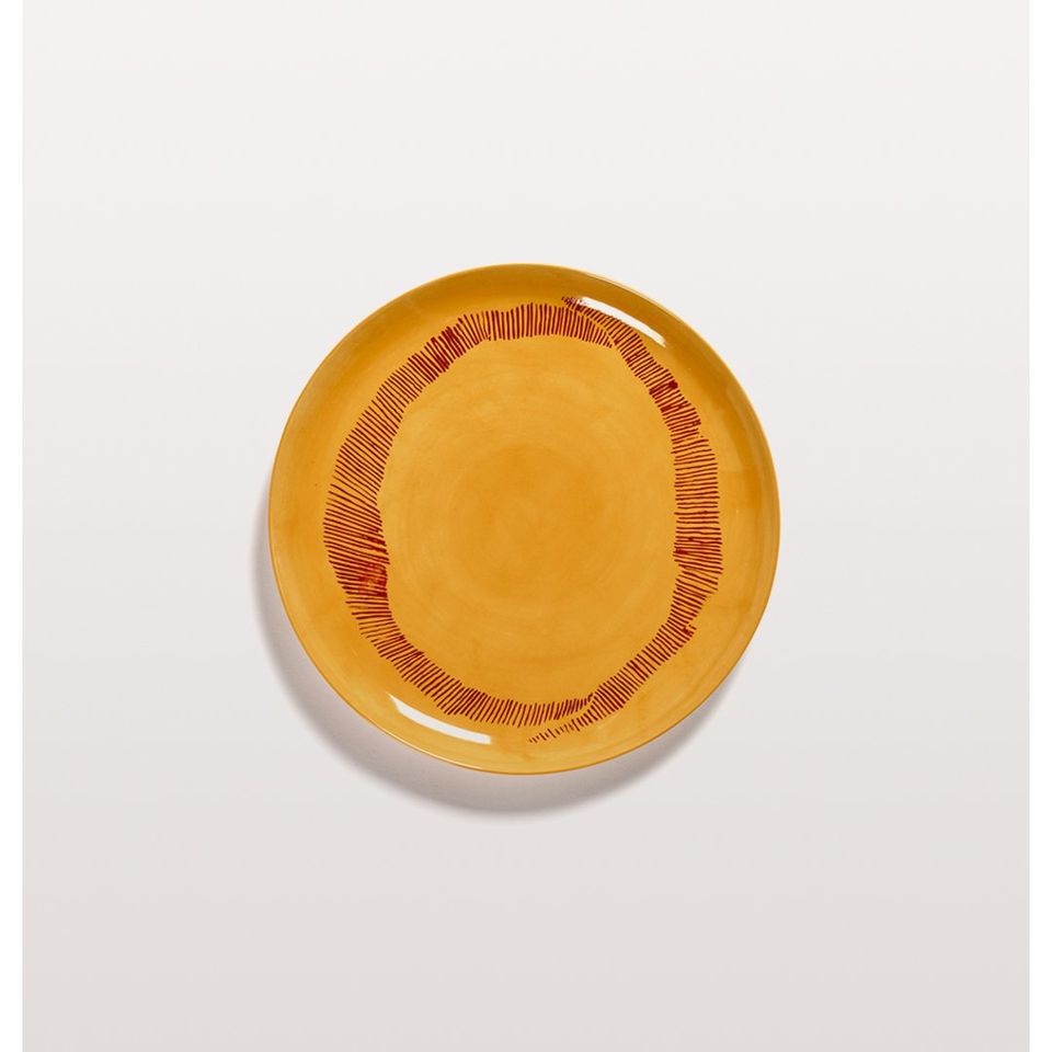 Large dinner plate available in 8 designs: White & Pepper Black • Sunny Yellow & Swirl Dots Black • Azure & Pepper Green • White & Swirl Stripes Blue • Lapis Lazuli & Swirl Dots White • Azure • Lapis Lazuli & Swirl Stripes White • Sunny Yellow and Swirl Stripes Red