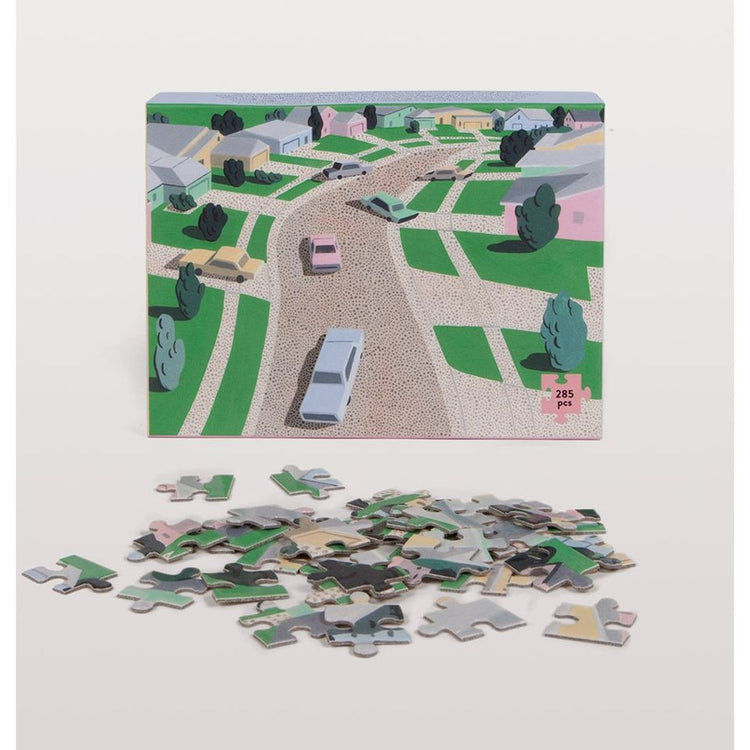The Pastel Suburbia Puzzle was illustrated by Vienna based artist Ana Popescu, and inspired by the architecture of Tim Burton’s 1990 film Edward Scissorhands .