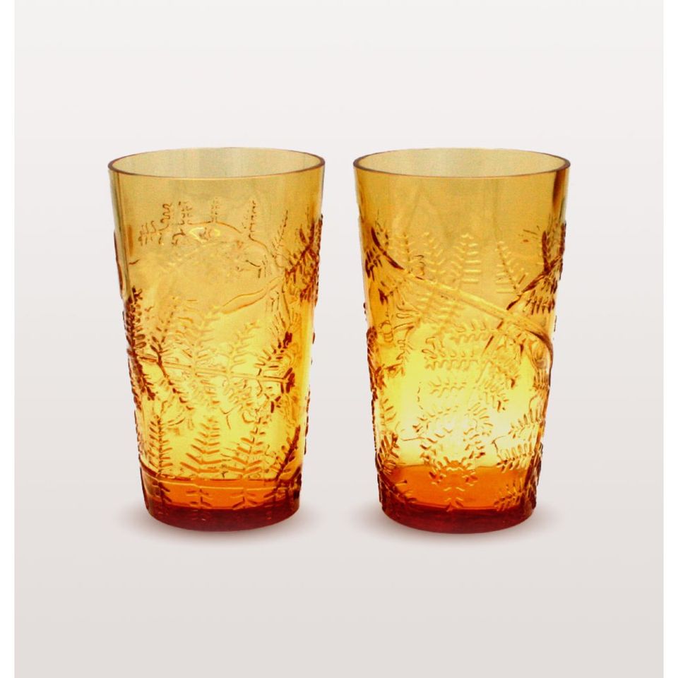 The dazzling Eden highball is made in clear yellow amber glass. The large summer inspired glass is highly decorated with relieved glass drawings of fern leaves and fauna.