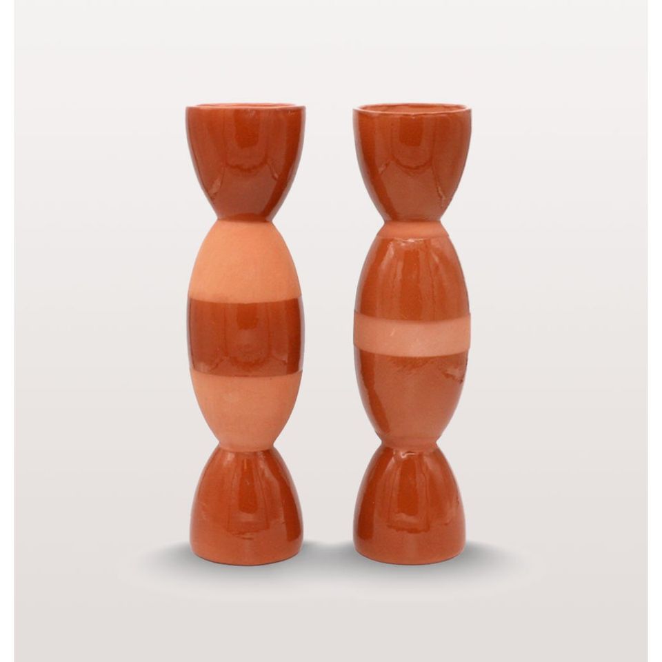 The mismatched egg cup candle holders are produced, glazed and finished by hand by artisans in her home town of Valencia, Spain.