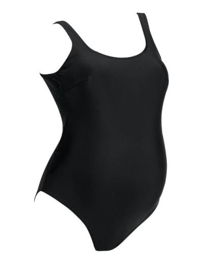 This Anita swimsuit features a figure-flattering silhouette specifically designed for expecting mothers. Constructed from chlorine-resistant fabric, this black maternity swimsuit can retain its shape and color even after multiple uses. The adjustable straps provide an optimal fit for sizes 40E.