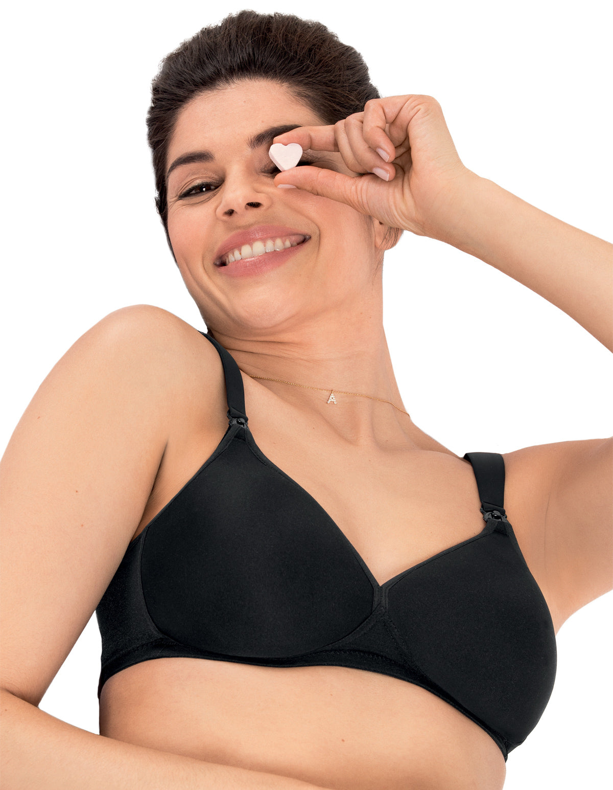 Airy and light, our MISS ANITA wireless spacer cup nursing bra has a timeless design and a beautiful low cut wide neck line that looks great under your clothing. The cups are made from breathable spacer fabric that ensures a pleasantly cool body temperature. The clean-cut nursing support provides added comfort and prevents the innovative padded straps from slipping down during breast feeding.