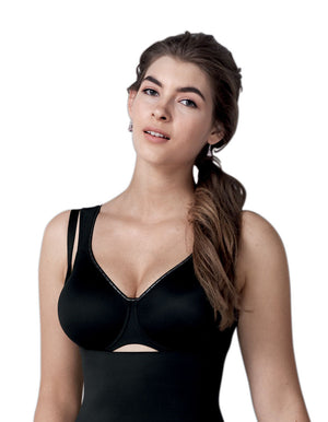 The Anita Rosa Faia 5694-001 Twin Firm Black Non-Padded Wired Bra is a firm support bra with innovative features that offer superior comfort. It features adjustable straps, comfort straps, underwiring and support staves that provide extra back support, plus power back control zones that helps reduce bulging. Best of all, this supportive bra has a special supporting effect and is non-padded for extra comfort.