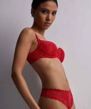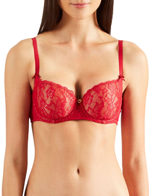 Aubade HK04 Rosessence Gala Red Floral Lace Comfort Half Cup Bra 34A