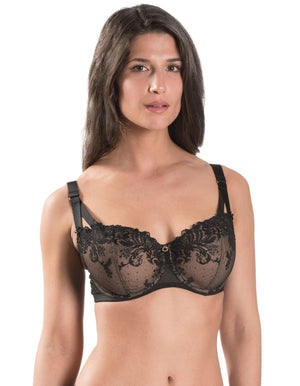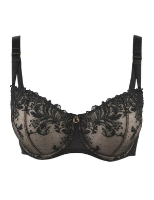 Aubade MI14-02 Femme Passion Black Embroidered Underwired D+ Comfort Half Cup Bra 32E