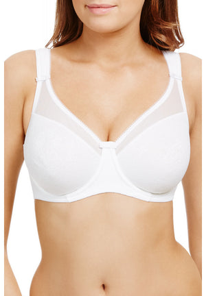 Our B521 best selling minimiser bra is practical yet feminine, with elegant lace detail, perfect for fuller busts and larger back sizes.