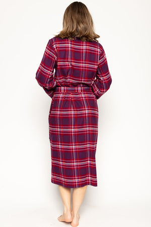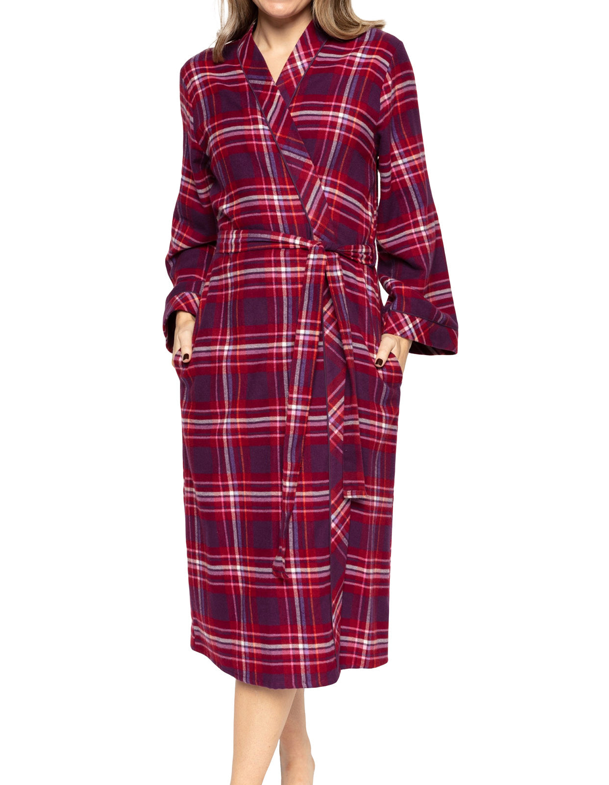 Treat yourself to our luxurious super-cosy magenta and pink check long dressing gown, designed to envelop you in comfort and style. Made from 100% cotton, this dressing gown offers the perfect blend of softness and breathability, ensuring a delightful lounging experience. Crafted with meticulous attention to detail, the gown features a charming magenta modal trim that adds a touch of elegance to its design. The wrap-front, kimono-style silhouette exudes sophistication, while allowing for easy wear and a flattering fit. Fastening effortlessly with a self-fabric belt, this dressing gown accentuates your curves while ensuring a secure closure. Plus, with the addition of two convenient side pockets, you can keep your essentials close at hand. Whether you're unwinding after a long day or enjoying a lazy weekend morning, our check long dressing gown from the Eve Collection guarantees unparalleled comfort and timeless style.