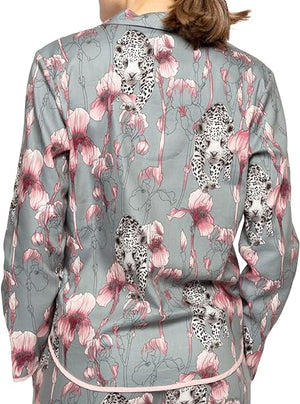 The Cyberjammies Jessica 9414 Grey Leopard Print Cotton Pyjama is perfect for sleeping and lounging. Crafted from cotton, it ensures that the wearer stays comfortable while enjoying a cozy night in. Featuring a grey leopard print, it is stylish and sure to make a statement.