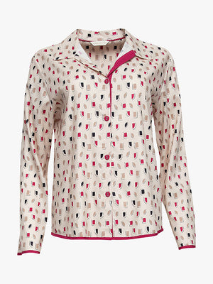 The Cyberjammies Naomi 9327 Cream Geometric Print Cotton Pyjama is crafted from durable, breathable cotton and is designed with a stylish geometric print. This comfortable sleepwear is a luxurious piece with a classic style.
