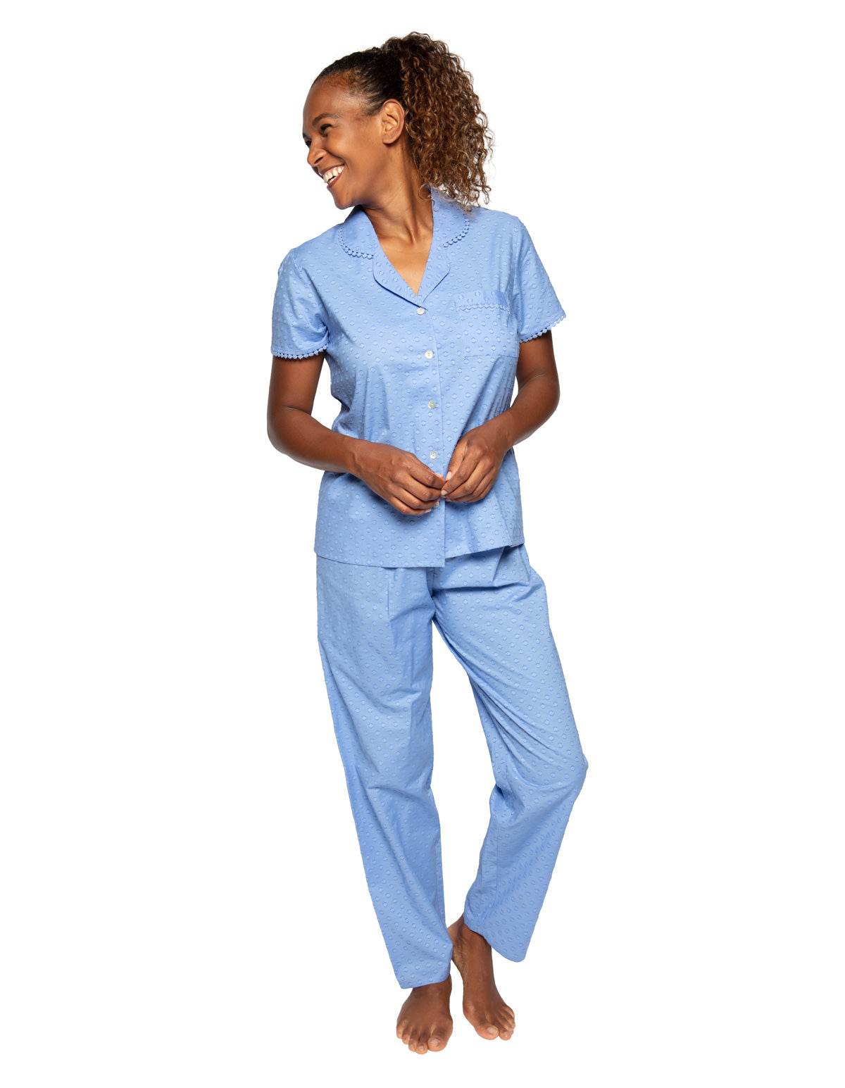 This sophisticated cotton pyjama set from Cyberjammies will keep you stylishly cozy. Crafted from 95% cotton and 5% elastane, the Nora Rose Elizabeth 1527 features a blue spotted print and an elasticated waist for a comfortable fit. Look and feel fabulous all night.