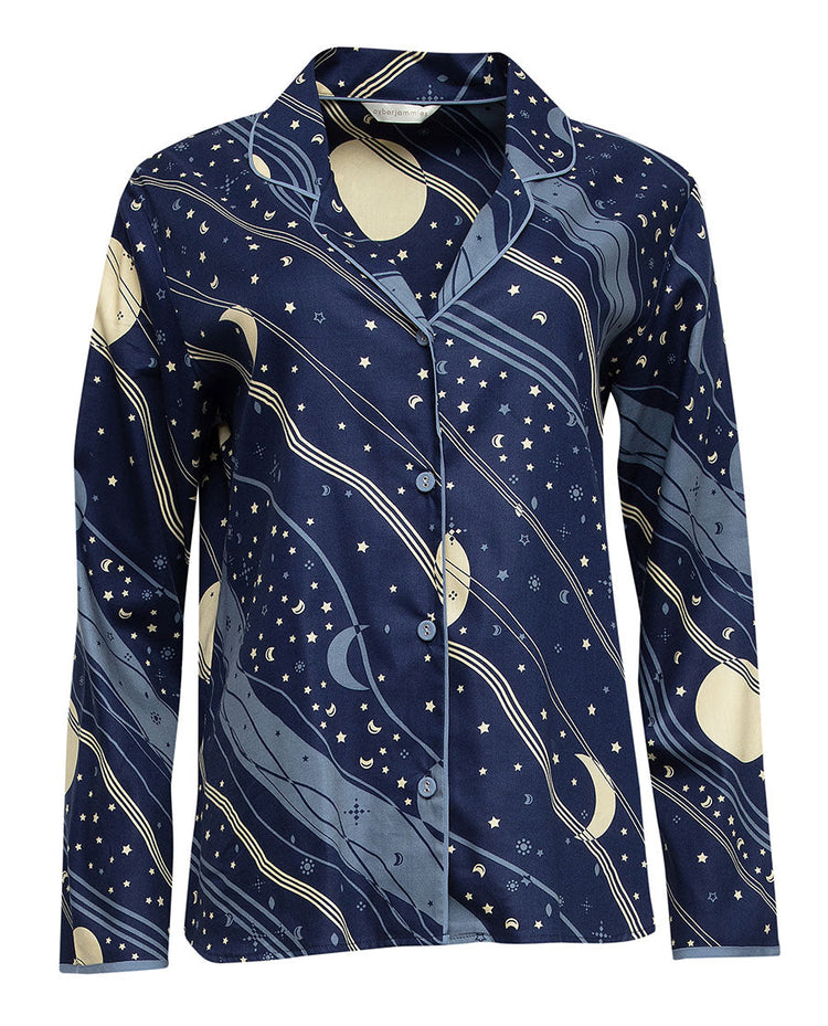 These modern and stylish Cyberjammies feature a beautiful blue celestial print, made from 100% cotton for maximum comfort. The breathable fabric and relaxed fit will keep you feeling comfortable all night, whether you're sleeping or lounging. Perfect for any season.