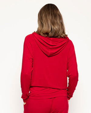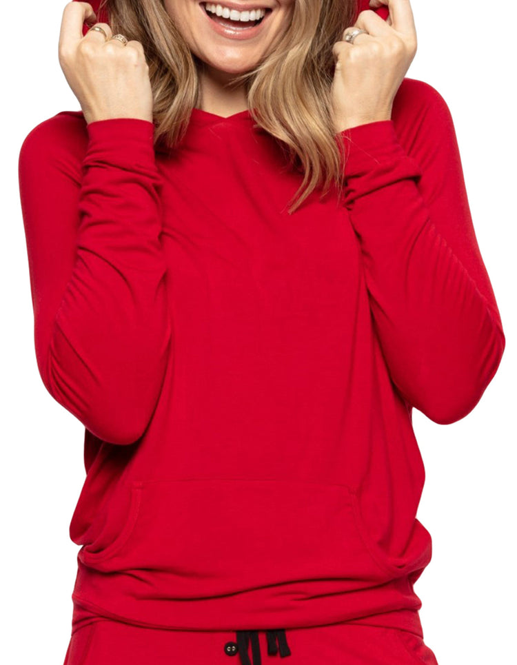 Luxuriously soft modal jersey hoodie. Relaxed fit with comfortable raglan sleeves and an oversized front pocket. Perfect for layering to keep you warm on chilly nights. Pair with the coordinating nightwear to sleep or lounge in style.