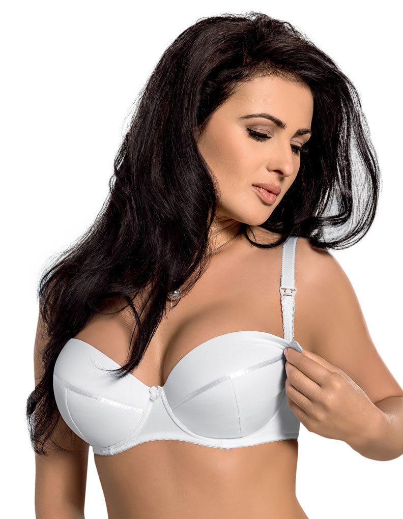 The Gorsenia Ana White Underwire Padded Bra is a luxurious piece of lingerie, designed with quality and comfort in mind. A classic bra perfect for pregnancy and breastfeeding, created entirely from smooth microfibre, with plain not patterned open cups lined with soft 100% pure cotton, and adorned subtly with a little bow. The adjustable straps and hook-and-eye back closure are designed for the perfect fit, letting you flaunt your curves in style.