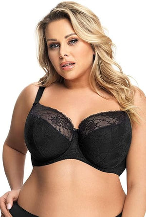 Gorsenia K357 Blanca Black Floral Lace Padded Underwired Full Cup Bra 100D