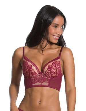 Gossard 15608 Encore Bordeaux Red Floral Lace Padded Underwired Longline Bra