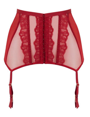 Gossard 17102 VIP Guipure Lipstick Red Lace Embroidered Suspender Belt XSmall