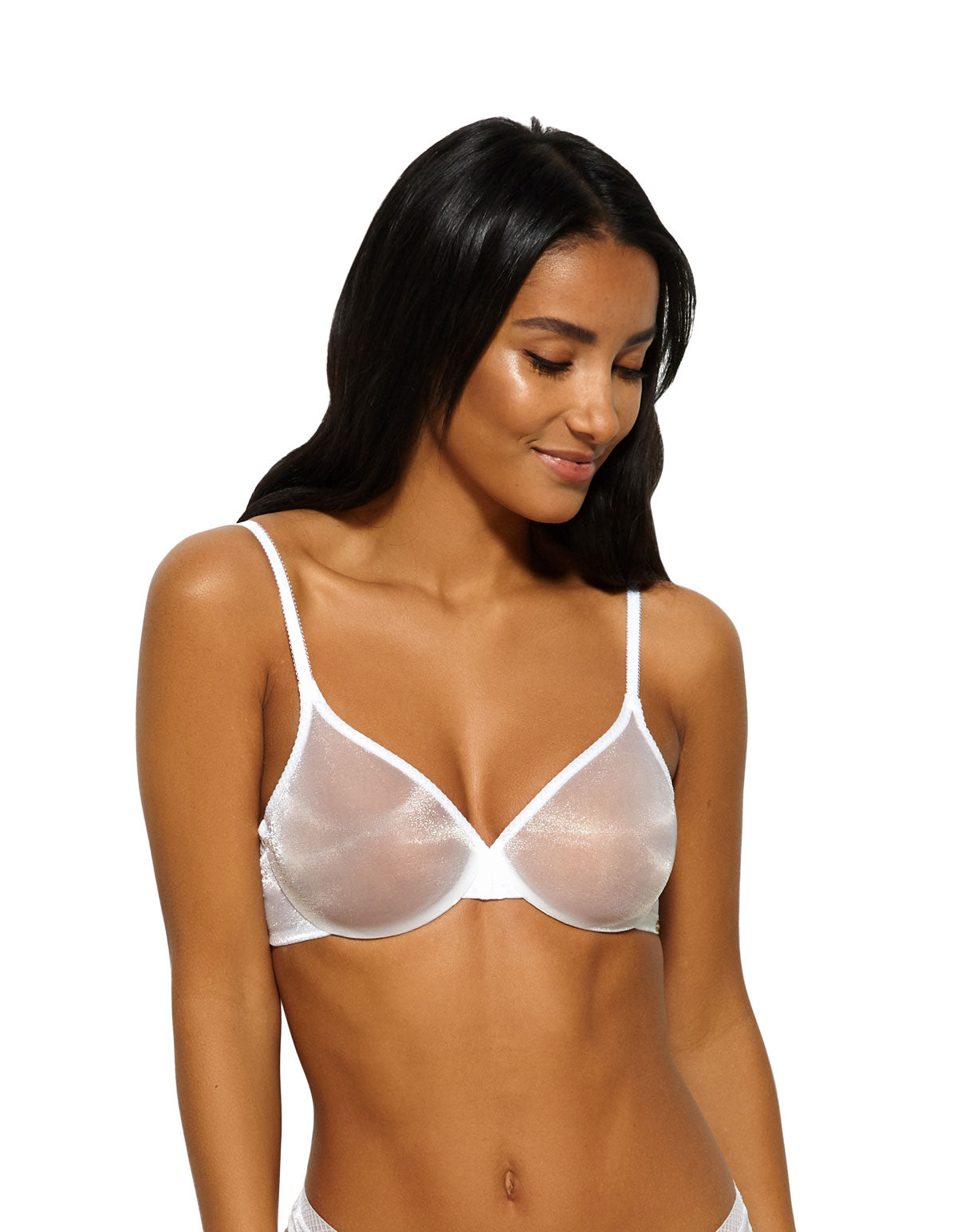 Classic Gossard Glossies are back! Part of our best-selling sheer lingerie, this sheer moulded bra in white has a barely there feel. Cutting edge fabric and the latest shape technology come together to set a new standard for comfort and fit. More about you, less about the bra! Love me, wear me, feel me!