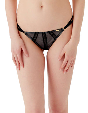 Gossard's darkly seductive Shadow Mesh collection makes a bold statement with sexy fishnet and lace inserts. This sheer string brief features double sexy straps at the sides with a triangle mesh feature at the back. Exquisite attention to detail with stunning lace and fishnet trimmings. Complete your lingerie with other items from the Gossard Shadow Mesh collection. 77% Polyamide, 21% Elastane, 2% Polyester. Gusset Lining-Cotton 100%.