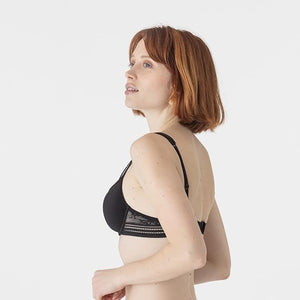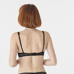 The Maison LeJaby 16432-04 Women's Miss LeJaby Black Lace Underwired Non-Padded Spacer Half Cup Bra offers luxurious comfort and all-day support. Its unique spacer fabric provides breathability, while the underwiring ensures you can move with ease. The adjustable straps and self-tie fastening make for a perfect fit.