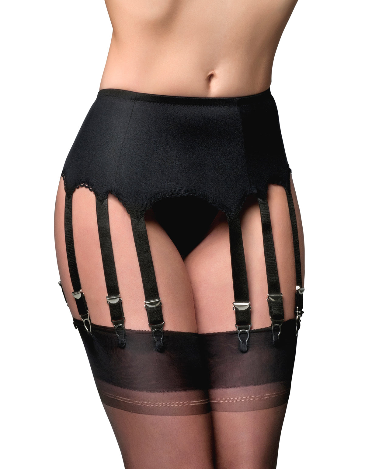 12 Strap Suspender Belt with all plain panels with all nylon lycra front and side panels.