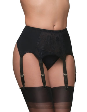 Nylon Dreams NDL8 Black Lace 6 Strap Suspender Belt