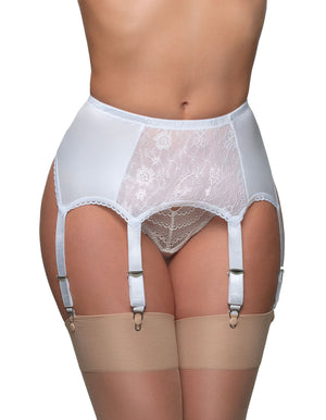 Nylon Dreams NDL8 White Lace 6 Strap Suspender Belt