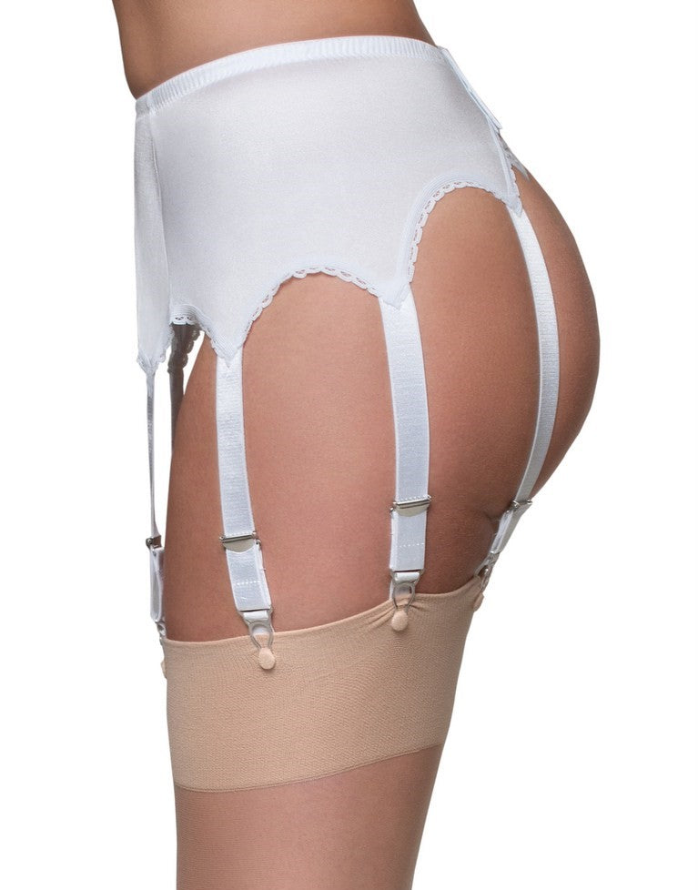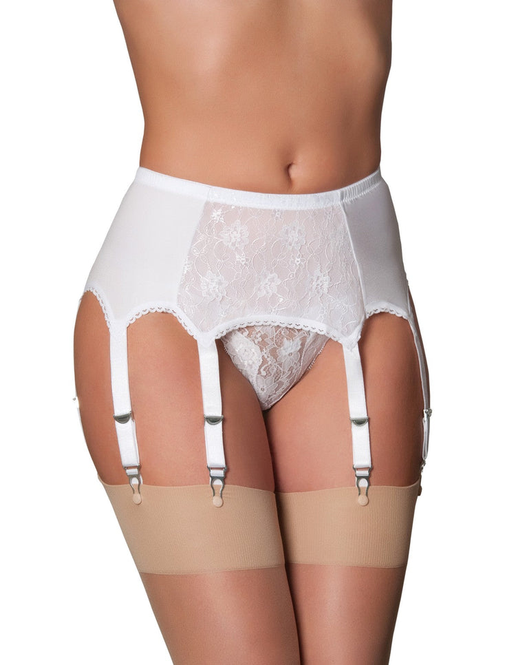 Nylon Dreams NDL9 White Lace 8 Strap Suspender Belt