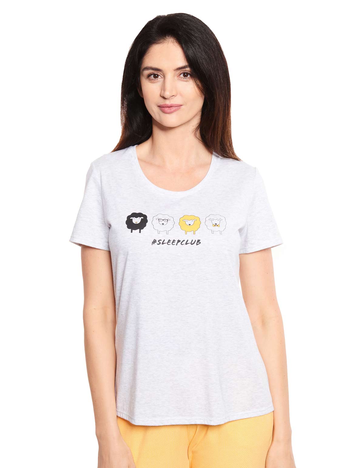Rösch Be Happy! 1212051-15610 Heather White Motif Cotton Pyjama Top