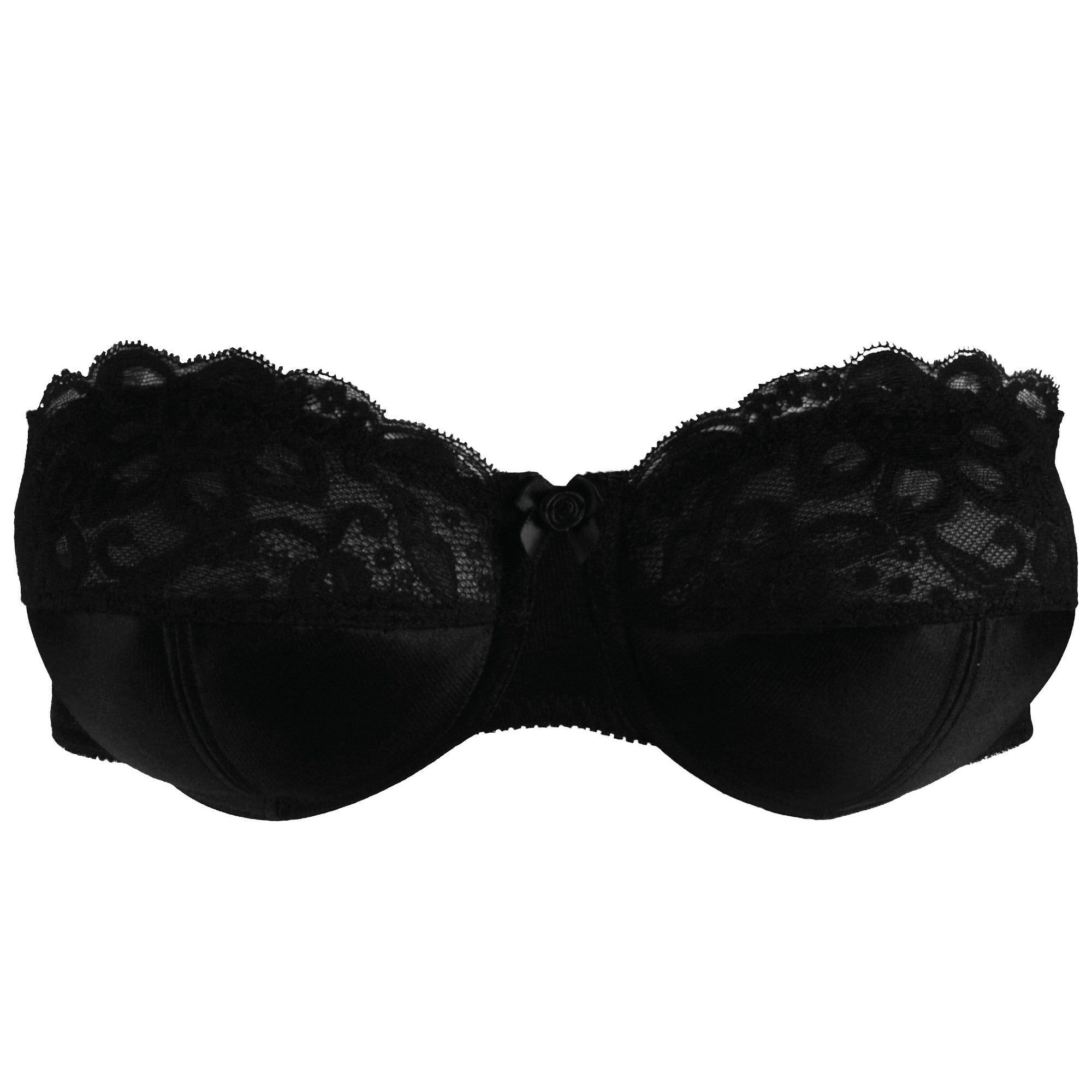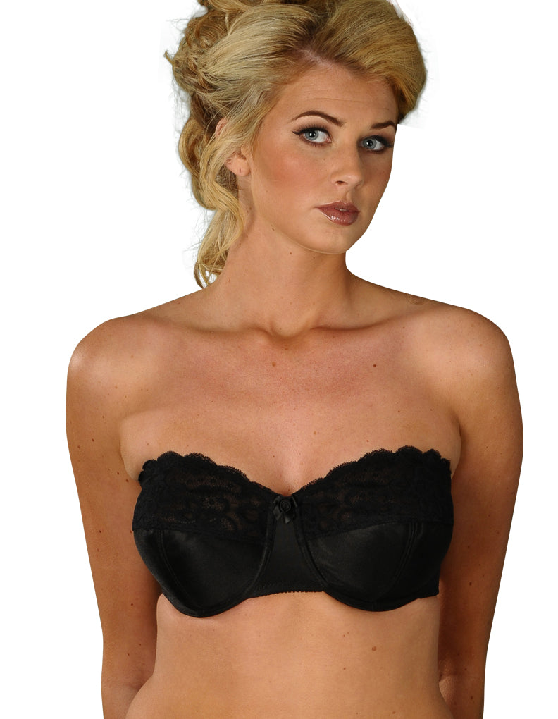 The Silhouette Paysanne Black Strapless Multiway Bra delivers ultimate support and comfort. The Silhouette "seven different ways" bra style 4058 allows one strap off the shoulder, halterneck, criss cross razor back and it can be pulled down at the back to become a backless bra.The silicone edging around the top of the bra prevents any movement.The design is seamless with subtle layered lace and a soft satin finish, topped with a delicate satin bow in the centre. Carefully created to support you no matter what size you are and with detachable straps that can be arranged to suit any outfit. Both the fit and design of this bra is timeless and exactly how true classic lingerie should be.