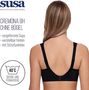Susa 7761-4 Women's Cremona Black Padded Non-Wired Support Soft Bra